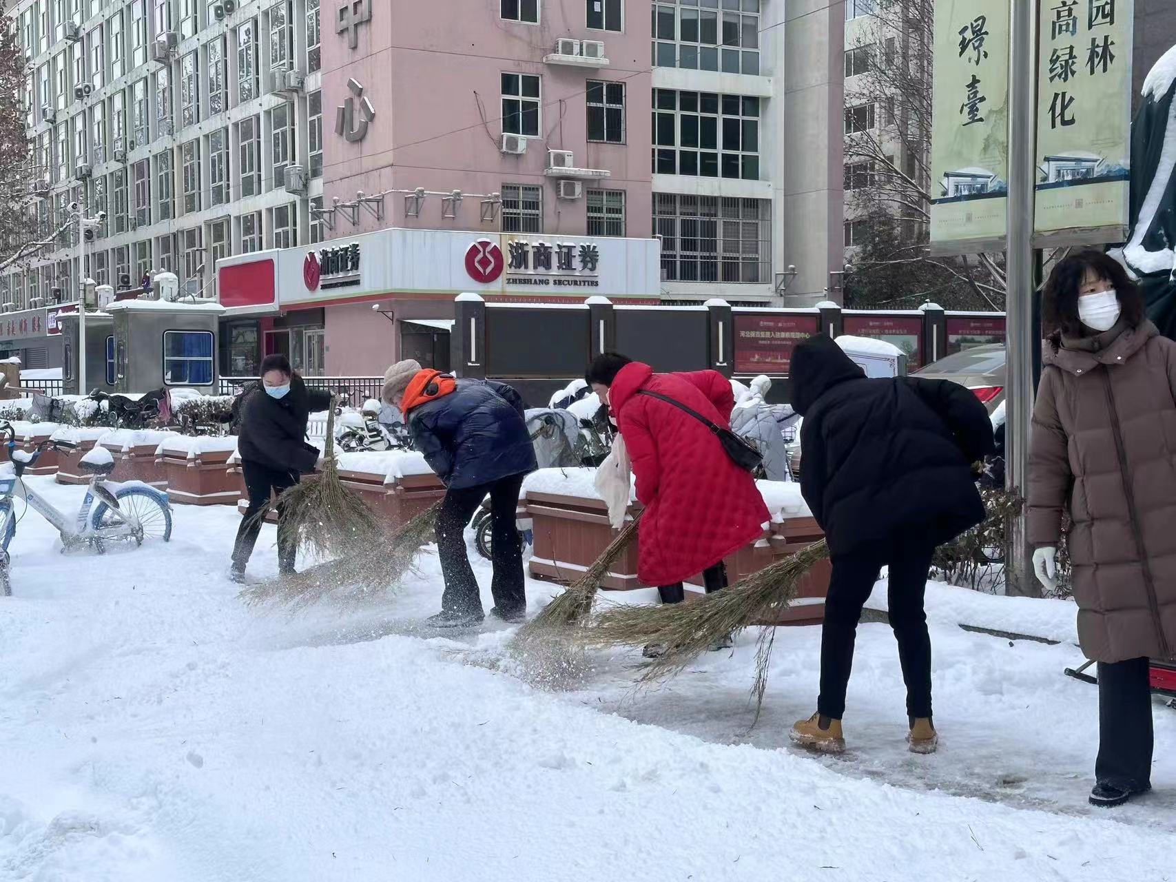 ??2月21日,為應(yīng)對雨雪冰凍天氣,保障行人安全暢通出行,產(chǎn)發(fā)集團(tuán)黨委迅速組織全體干部職工響應(yīng)號召、積極作為,在復(fù)興中路翠園街至陽光大街路段掃雪除冰。